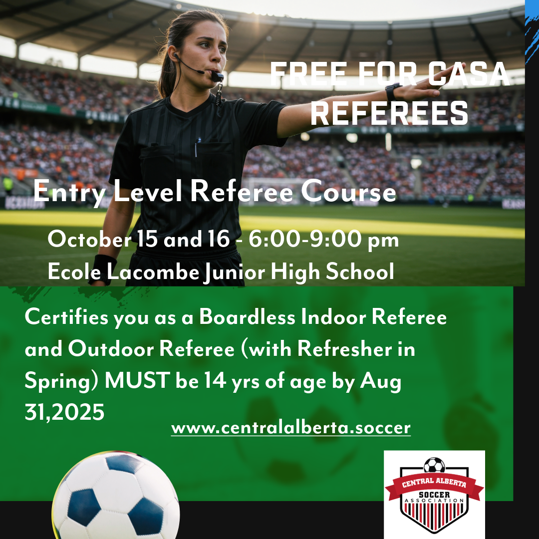 Entry level Course (Must have turned 14 years of age by August 31) - will be eligible to Officiate games at the Dome for Indoor
